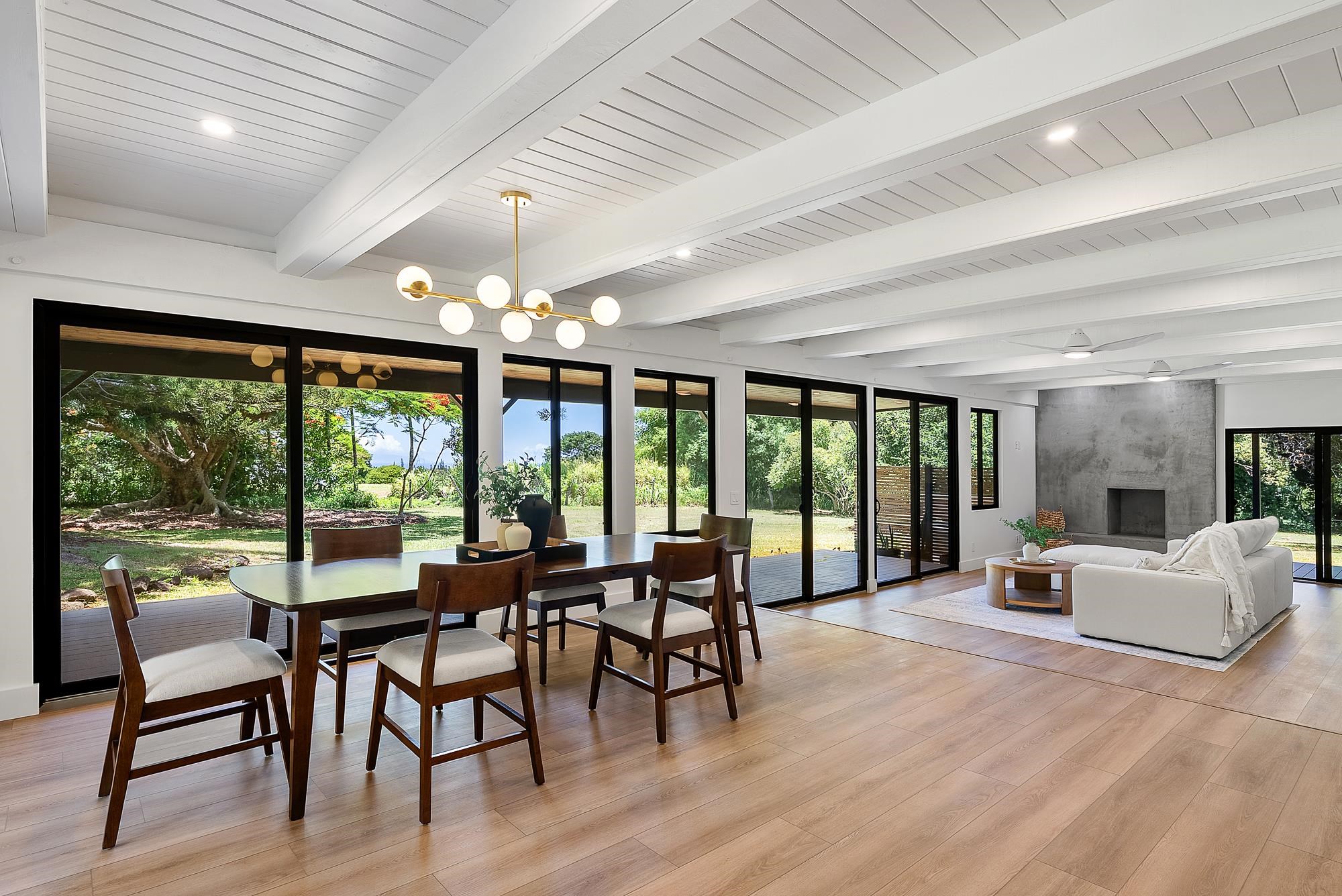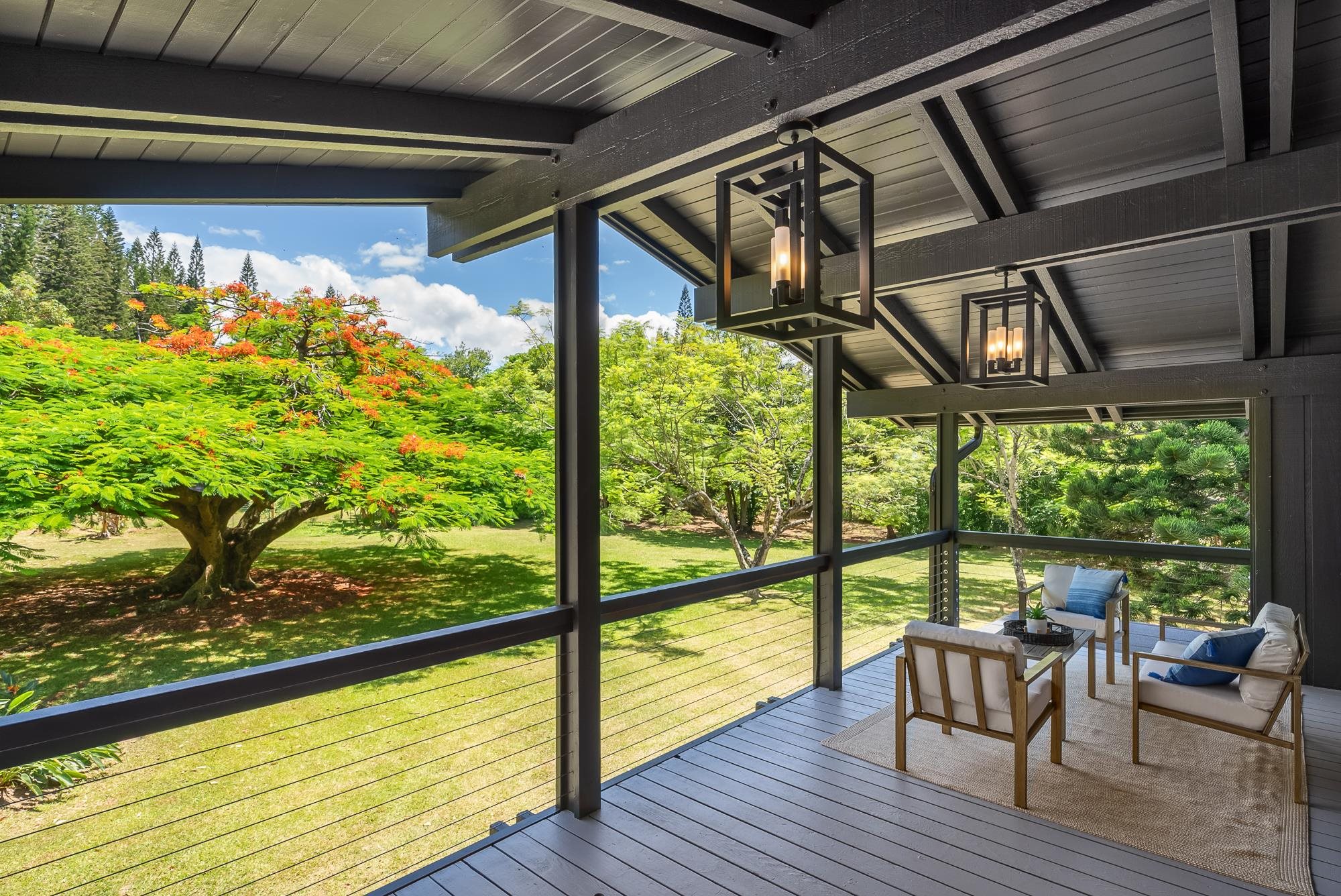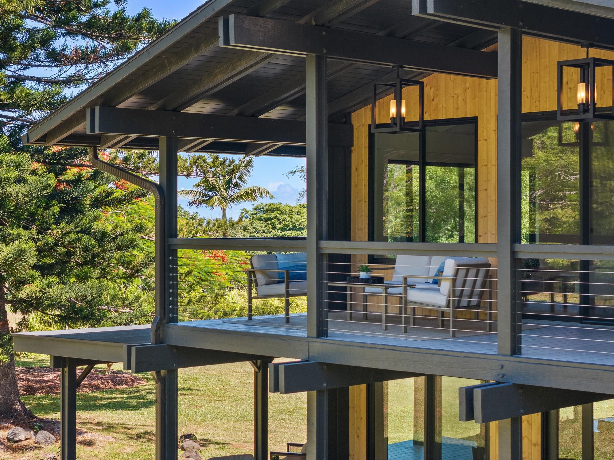 It's time for you to own your escape. Maui's North Shore is calling. Wake to the sound of the warm trade winds gently swaying the trees. Stroll in your expansive yard picking fresh fruit to complement your morning smoothie. Sit with your favorite book in your treehouse perched over a lush forest, dappled with sunshine. Catch a rainbow and end your day soaking in your outdoor bath, watching the sun set. Your idyllic Maui escape is ready: 965 Hog Back Road. At the end of a country road, tucked behind a majestic Royal Poinciana tree, sits a true North Shore treasure. Originally designed by renowned Maui architect Harry Rice and now reborn as a mid-century modern retreat, the home is elegantly enveloped by more than four acres of lush, private gardens. Light-filled living spaces open to expansive lanais and a spa-like outdoor bath featuring a 72" concrete soaking tub and custom shower. The gourmet kitchen boasts a 48" Hestan gas range, paneled Hestan refrigerator, European-style cabinetry, and a dedicated pantry/prep area. The 3,100 sq. ft. home features 3 spacious bedrooms, each with a luxurious ensuite bath, plus a separate upgraded cottage ideal for guests. A custom eucalyptus spiral staircase and handcrafted details throughout accentuate the classic Maui roots. Mature fruit trees, peaceful walking paths, and a treehouse overlooking the forested gulch create a private, retreat-like setting. All the home's amenities and features, accompanied with North Shore conveniences, make this a truly unique architectural treasure. This is an A unit of a CPR.